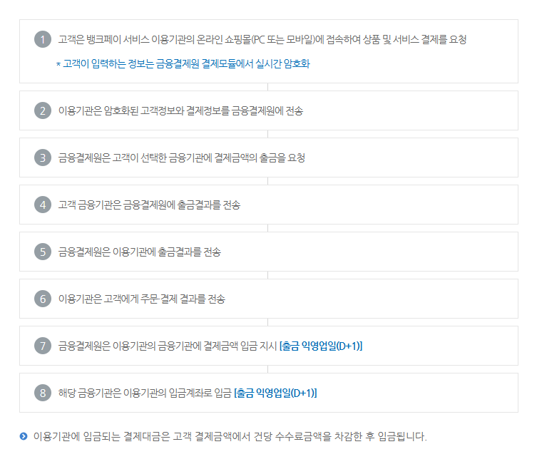 뱅크페이는 금융기관과 금융결제원이 공동으로 제공하는 전자결제 서비스입니다.
